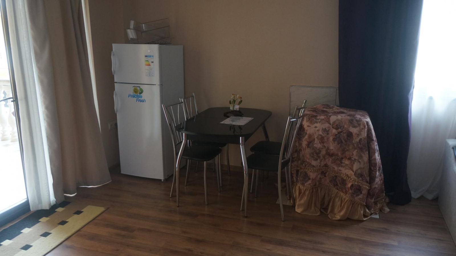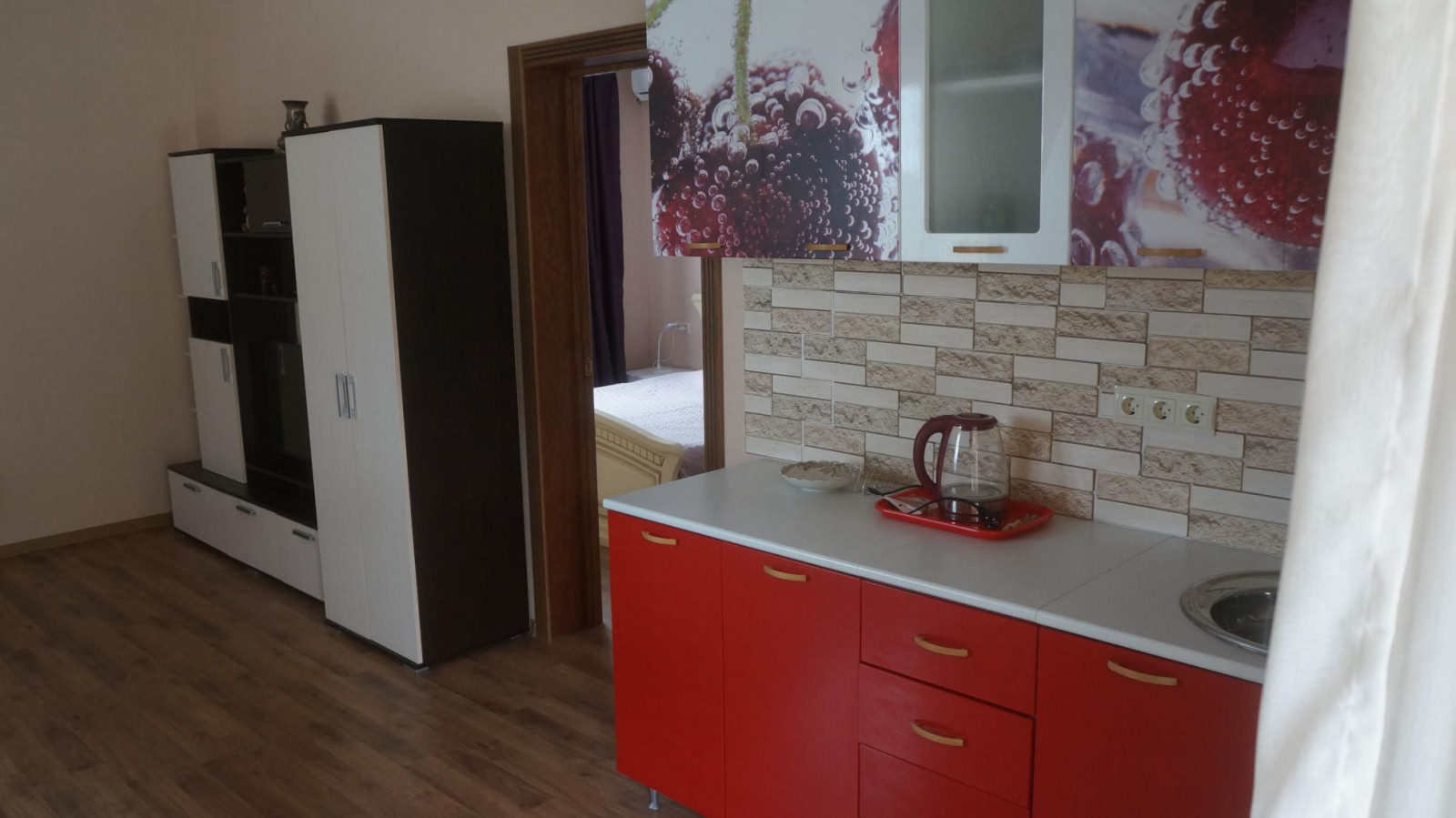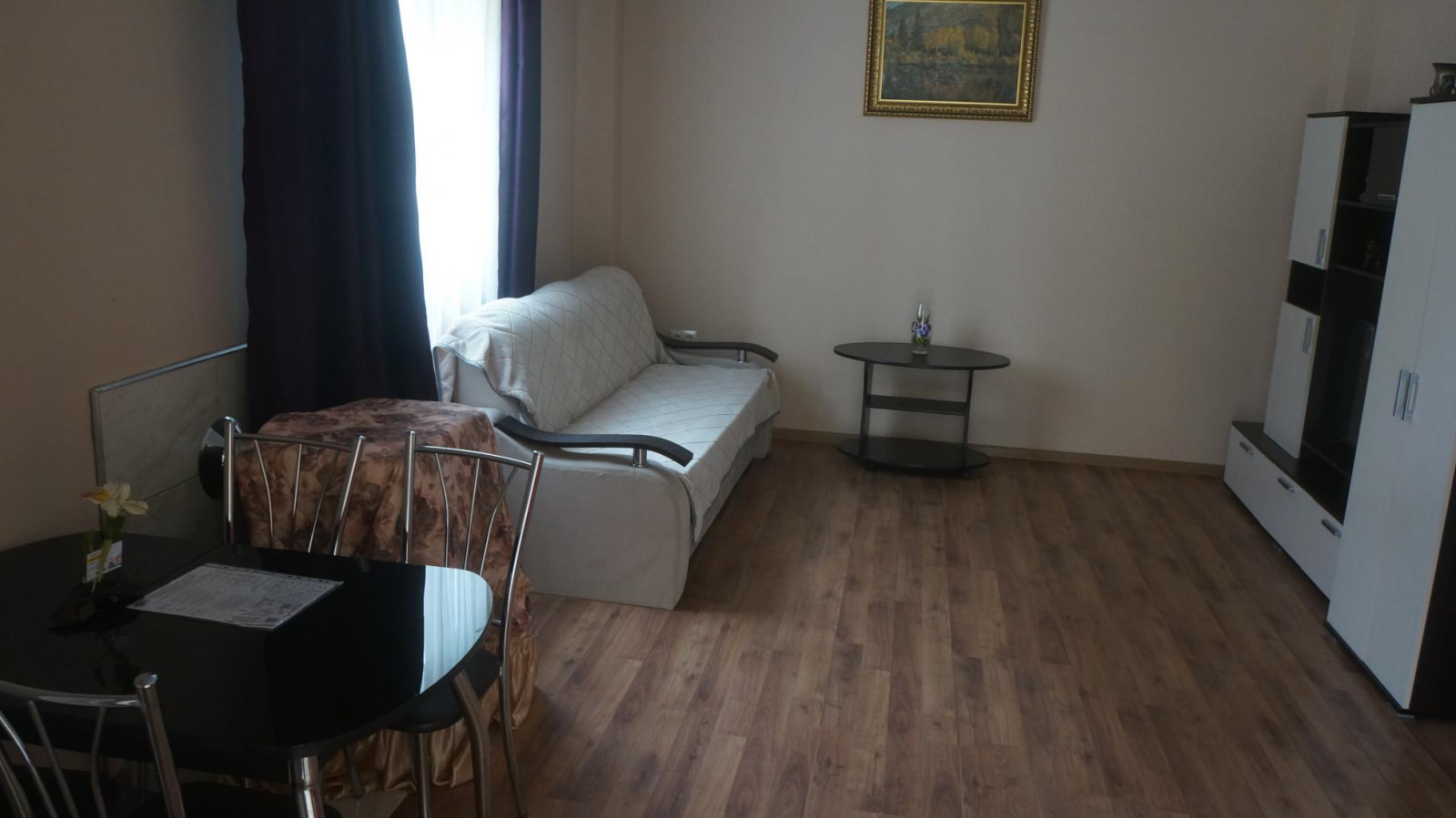Просторный номер из двух комнат. Расположены номера на втором и третьем этажах. В спальной комнате находится большая двуспальная кровать, в гостиной раскладывающийся диван. В номере холодильник, мини-кухня, телевизор с цифровым телевидением, столовые приборы, собственная ванная комната, шкафы под одежду, обеденный стол, стулья.