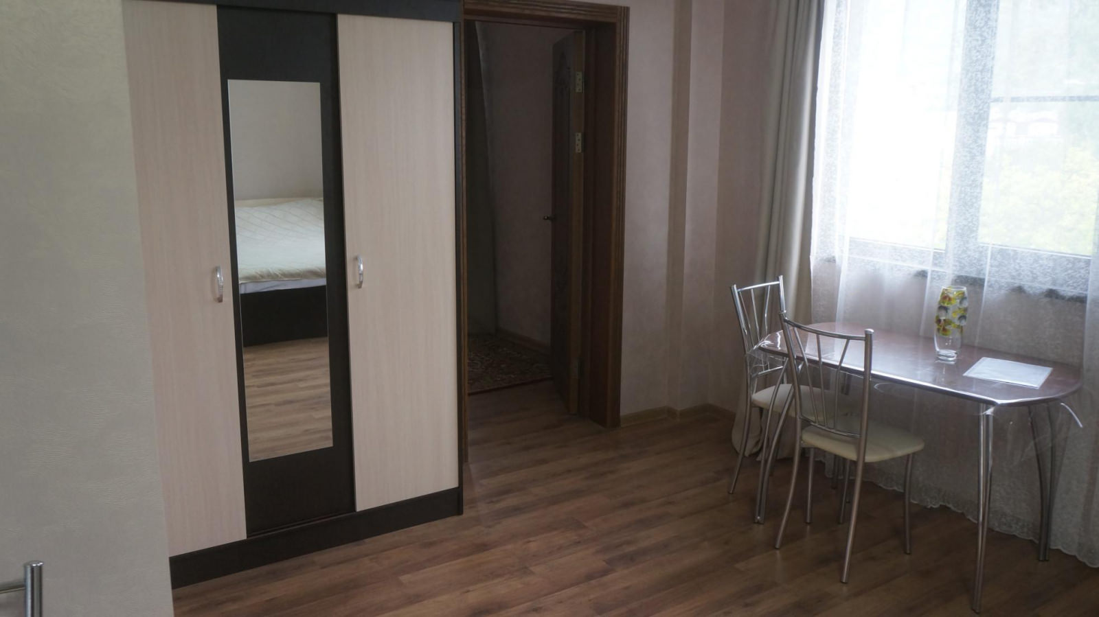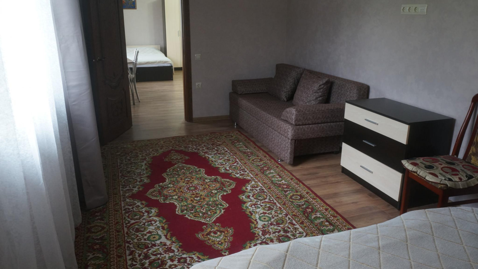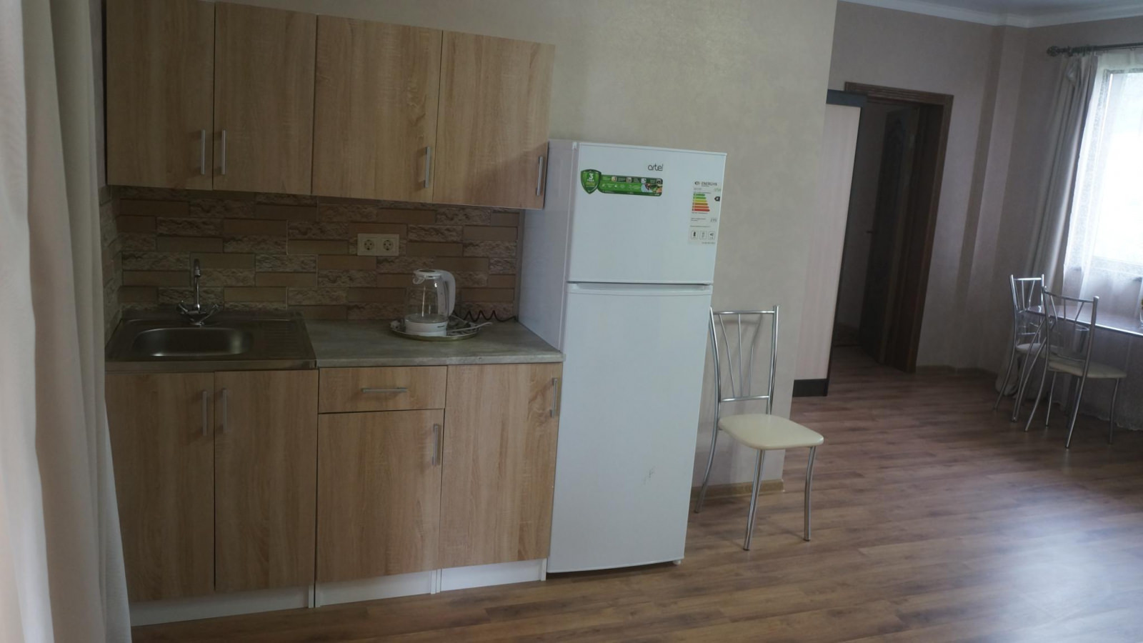 Просторный номер из двух комнат, расположенный на третьем этаже. В одной комнате находится большая двуспальная кровать, во второй одна большая двуспальная кровать и раскладывающийся диван. В номере холодильник, мини-кухня, телевизор с цифровым телевидением, столовые приборы, собственная ванная комната, шкафы под одежду, обеденный стол, стулья.