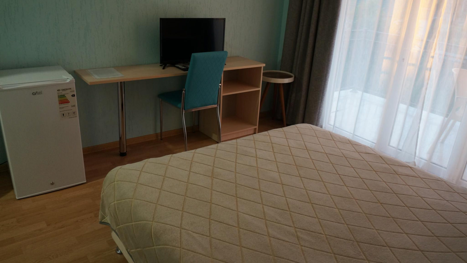 Номер с двуспальной кроватью, собственной ванной комнатой. Номера это категории располагаются на 2, 3, 4 этажах, все номера имеют балкон, оборудованный сушилкой для белья, столом и двумя стульями. В номере кабельное телевидение, кондиционер, холодильник.
